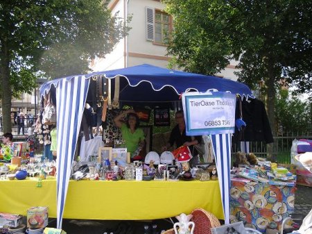 Am 04.09.2011 hatten wir wieder einen Stand auf dem Flohmarkt in Nohfelden. Wir harrten bei einem Mix aus Regen und Sonnenschein aus bis zum Schluss und gingen nicht mit leeren Händen, aber mit vielen Flohmarktartikeln wieder nach Hause. Was tut man nicht alles für das Wohlergehen der Tiere!